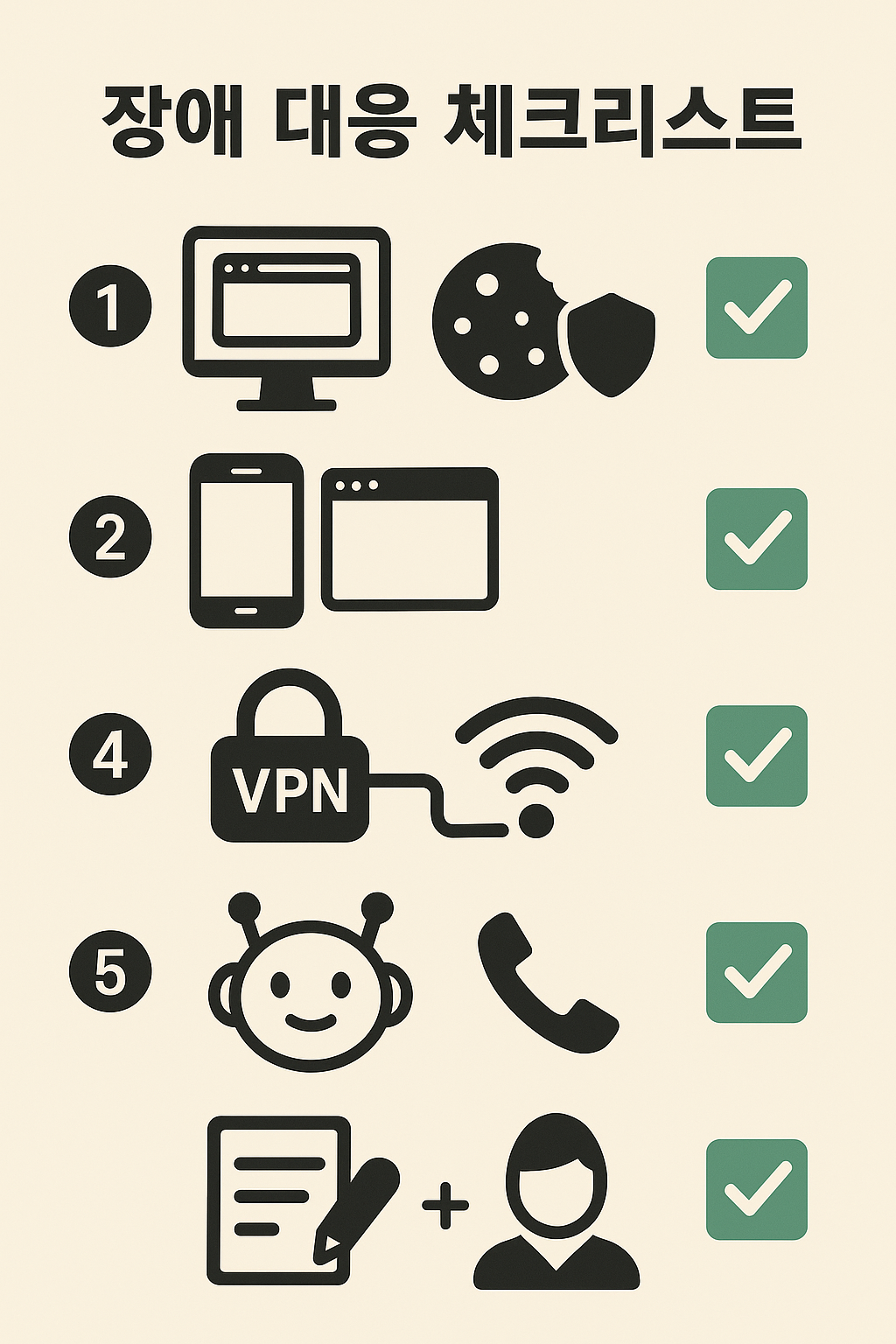 – 해결: 로그아웃 후 로그인 • 캐시·쿠키 삭제 • 지원팀 문의