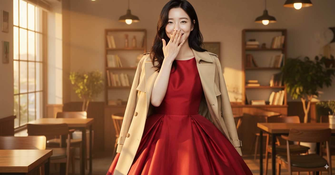 4 . 의상 재질은 명시하라 . 코듀로이 . 트위드 . 린넨처럼 재질 키워드가 있으면 주름과 광택이 자연스럽다 .